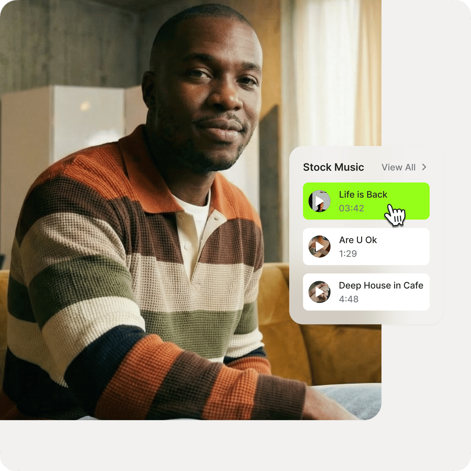 VEED একটি অনলাইন ভিডিও এডিটিং অ্যাপ, যা আপনাকে আপনার ভিডিওতে বিনামূল্যে মিউজিক যুক্ত করতে সাহায্য করে। আপনার ভিডিও ফুটেজ এ চমৎকার সাউন্ডট্র্যাক যুক্ত করুন, আমাদের সহজেই ব্যবহারযোগ্য এডিটিং সফটওয়্যার এর মাধ্যমে। ব্যাকগ্রাউন্ড সাউন্ড ইফেক্ট, অডিও রেকর্ডিং, ভয়েস ওভার, রয়্যালটি-মুক্ত মিউজিক ট্র্যাক ইত্যাদি যুক্ত করুন! আপনি ইন্সটাগ্রাম, ইউটিউব বা অন্য যে কোন সোশ্যাল মিডিয়া সাইটেই আপলোড করুন না কেন, অডিওটি ঠিক আছে কিনা তা নিশ্চিত করুন VEED এর মাধ্যমে। আপনি আপনার ভিডিও থেকে অডিও সরাতে পারেন (ব্যাকগ্রাউন্ড নয়েজ সরানোর জন্য), এরপর একটি পৃথক অডিও ফাইল আপলোড করে একটি ভিডিও হিসেবেই সংরক্ষণ করুন। আপনি আমাদের স্বয়ংক্রিয় 'ক্লিন অডিও' ফিচারটি (Dolby.io দ্বারা চালিত) ব্যবহার করে আপনার অডিওটি ক্রিস্টাল ক্লিয়ার কিনা তা নিশ্চিত করুন এবং যে কোন ব্যাকগ্রাউন্ড ইন্টারফেয়ারেন্স থেকে মুক্ত করুন। আজই আপনার মিউজিক ও ভিডিও ফাইলগুলো কম্বাইন করুন, VEED এর মাধ্যমে!