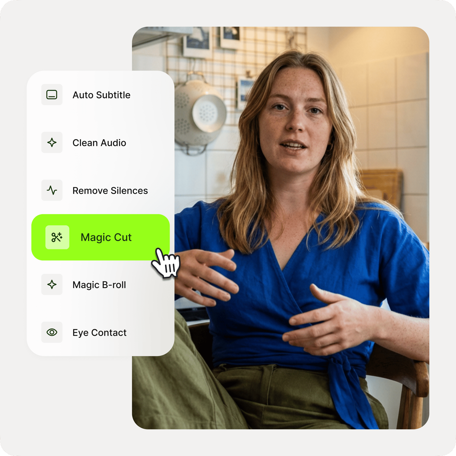 Lassen Sie KI B-Rolls für soziale Medien sowie Clips und B-Roll-Musikvideos sofort aus Ihrem Filmmaterial erstellen. Mit dem leistungsstarken Tool "Instant Clips" und der B-Roll-App können Sie sich selbst (oder den Sprecher) automatisch in der Mitte des Videos platzieren, Untertitel hinzufügen, Füllwörter entfernen und irrelevante Teile löschen - gleichzeitig mit einem Klick.