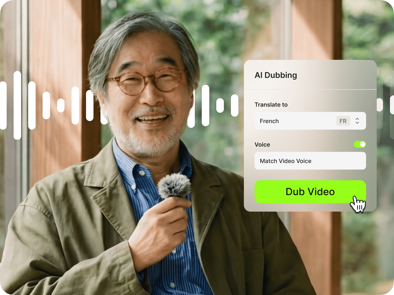 Machen Sie Ihre Videos einem globalen Publikum zugänglich, indem Sie sie automatisch online übersetzen. Laden Sie einfach ein Video hoch, generieren Sie automatisch Untertitel und übersetzen Sie Ihr Video dann mit einem einzigen Klick in eine beliebige Sprache. Übersetzen Sie Ihr Video in Englisch, Spanisch, Französisch, Chinesisch, Arabisch, Russisch und in über 100 Sprachen. Unser Videoübersetzer ist komplett online, es muss keine Software heruntergeladen werden.