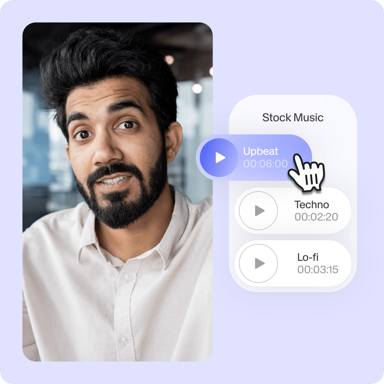 VEED es una aplicación de edición de video en línea que le permite agregar música y canciones a sus videos rápidamente y directamente desde su navegador. Cree un video musical agregando pistas de canciones a su metraje de video. ¡Agregue efectos de sonido, voces en off, música libre de regalías y más! Grabe podcasts de calidad profesional en línea con nuestro creador de podcasts y hágalos el doble de increíbles agregando aplausos, vítores y otros efectos. Limpie sus grabaciones y elimine el ruido de fondo con un solo clic con nuestra herramienta Limpiar audio. Nuestros suscriptores premium obtienen acceso a nuestra biblioteca completa y limpieza de audio con un solo clic. Consulte nuestra página de precios para obtener más información.