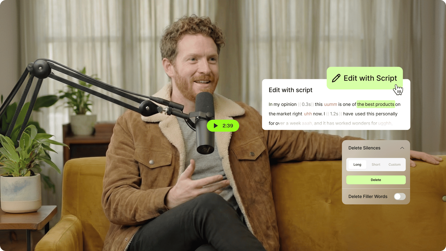 Bienvenido a la variedad de herramientas en línea para editar de VEED y sus útiles funciones que simplifican las complejas tareas de edición a unos cuantos clics. Despídete de los programas de edición de vídeo obsoletos y saluda a la edición de vídeo en línea de un solo clic. ¡VEED es un programa potente que te permite añadir subtítulos automáticamente, traducir vídeos, transcribir archivos de audio, añadir efectos visuales y crear contenido que incremente las veces visto, obtenga ‘Me gusta’ y atraiga seguidores!