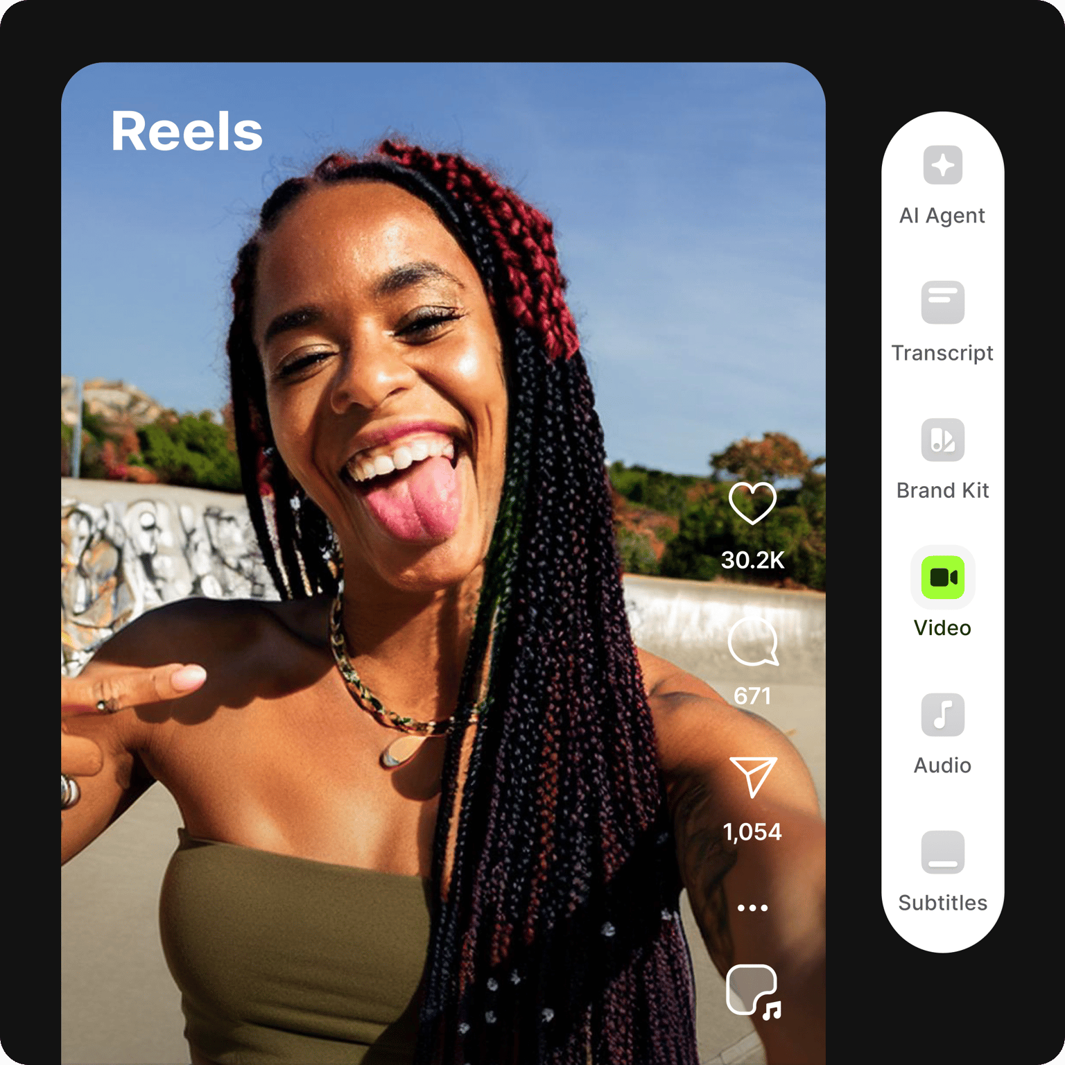 VEED no es solo una herramienta para editar vídeo. Es una herramienta que permite la colaboración entre los equipos en proyectos de vídeos, edición de archivos de audio, creación de transcripciones en texto a partir de audio y vídeo, compresión de archivos de vídeo para reducir su tamaño, traducción de transcripciones de vídeo y audio y mucho más. VEED es una herramienta que te permite incrementar tu presencia en línea - crea contenido cautivador que capte la atención de la gente.