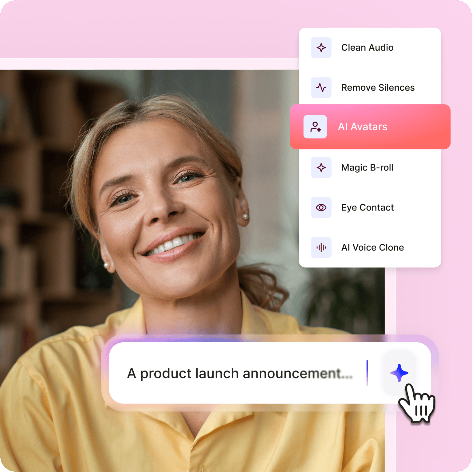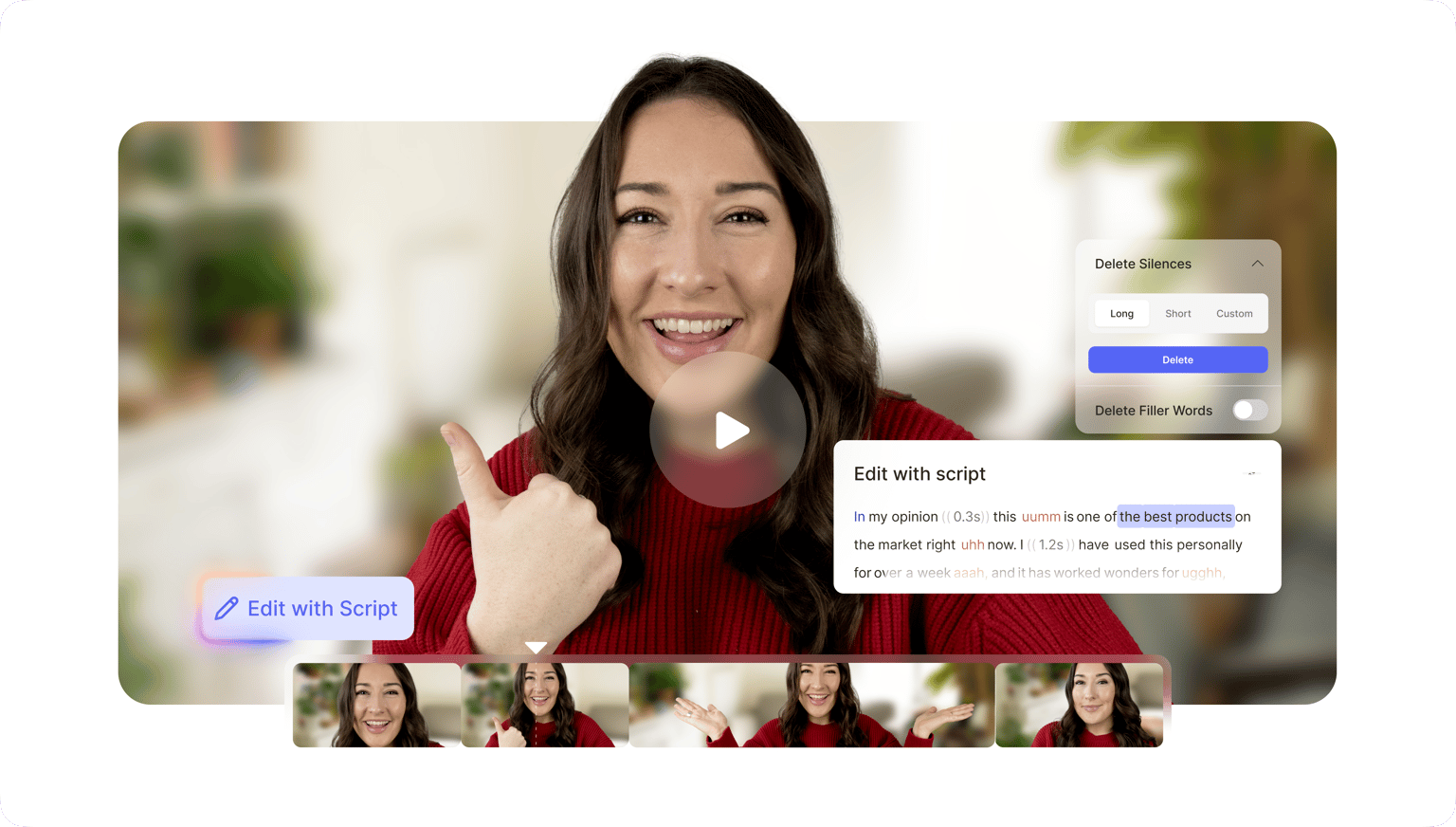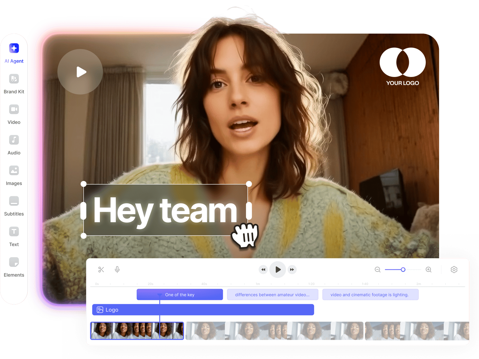 VEEDは、チームでの共同作業に対応したオンライン動画メーカーです。あらゆる動画形式(MP4、MOV、WEBM、AVIなど)で、ウェビナー動画の編集、Zoomの録画、ポッドキャスト動画への音入れなど、目的に応じたプロジェクトで共同作業を行うことができます。無制限の動画編集(音声編集&サウンドエフェクトを含む)が可能で、iPhone&iOSからの作業も可能です。VEEDは、あらゆるソーシャルメディアプラットフォーム用の素晴らしいマーケティング動画、イントロビデオ(イントロメーカーを使用)、ロゴを追加し、常に最高のブランディングを実現することが可能です。