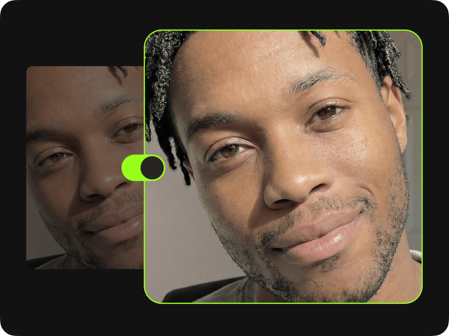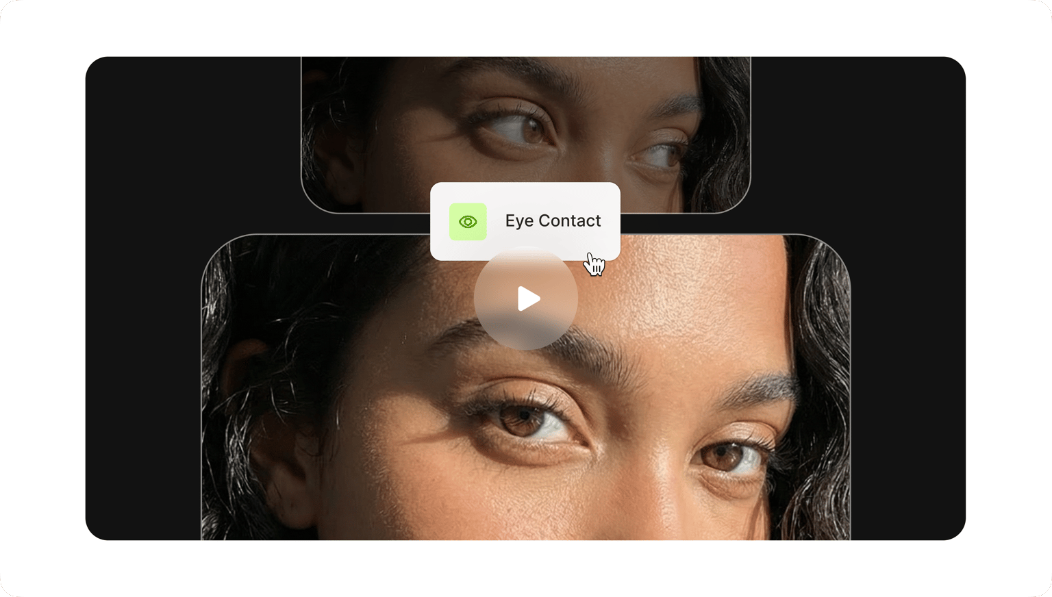 VEED의 AI 아이컨택 앱을 사용하여 동영상 녹화 시 카메라로 시선을 돌리세요. VEED의 인공 지능으로 구동되는 아이 콘택트 도구는 화면에서 더욱 전문적으로 보이도록 도와줍니다. 녹화 중이나 녹화 후에 대본을 읽을 때에도 시청자와 눈을 마주치세요.