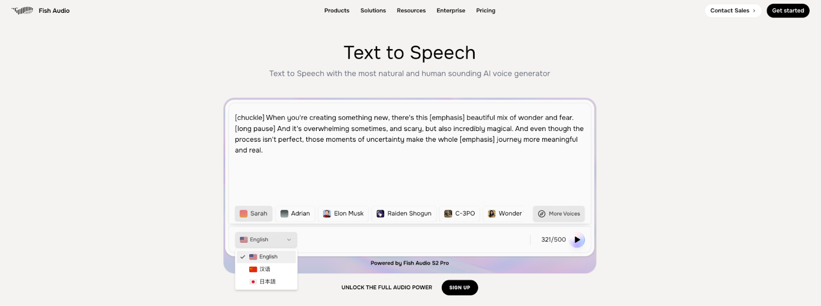 With their latest Fish Audio S2 model, you can direct emotions in the speech with precision using natural language emotion tags. This lets you create highly tuned speech, such as “[whispers sweetly] AI voice generation is crucial for immersion.”