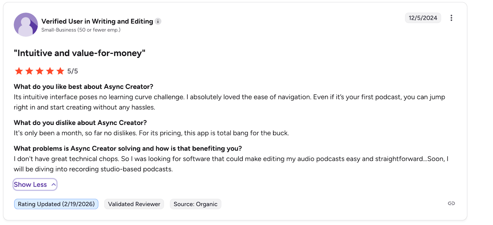 Reviewers particularly love VEED’s clutter-free interface and the fact that the tool is an all-in-one solution for creating, editing, collaborating on, and organizing videos at an affordable price.