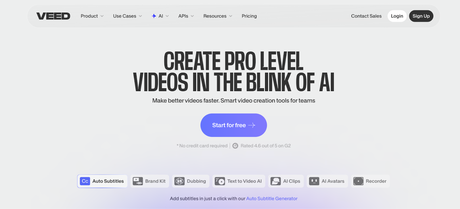 - Offers a robust free tier that includes essential features like Auto Captions and supports team collaboration. It boasts extensive AI features and is a strong option for professional use.