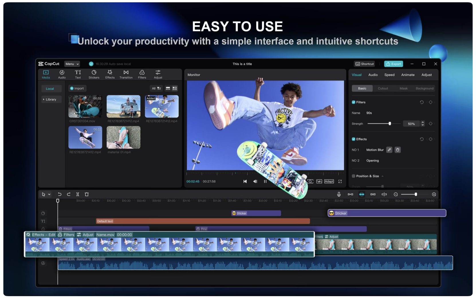 - Effects & filters: Trendy effects that resonate with social media users, viral filters, smooth transitions
