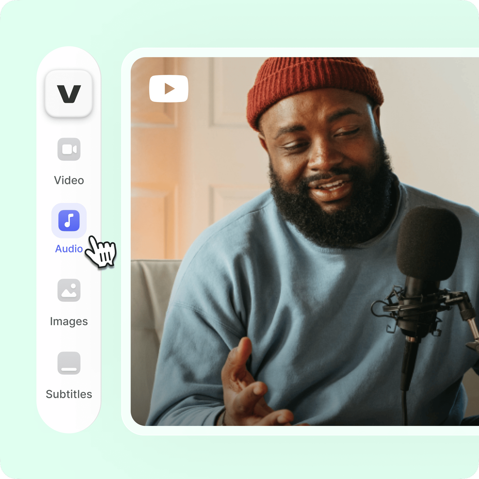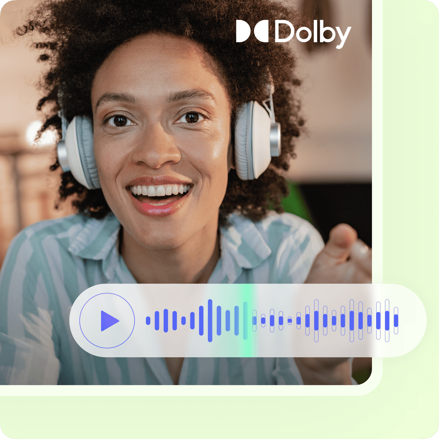Trabalhamos com a Dolby para oferecer a você o aprimoramento de áudio da mais alta qualidade do setor. Com um clique, você pode remover todos os sons indesejados e deixar seu vídeo com um som totalmente limpo. Nosso poderoso removedor de ruído detecta automaticamente sons indesejados em segundo plano e os limpa do seu áudio em segundos. Funciona com todos os tipos de arquivos de vídeo, incluindo MP4, MOV, AVI, MPEG2, MPEG4, M4A, MKV, FLV e muito mais. Ou você também pode remover o ruído de fundo dos arquivos de áudio, mesmo que não haja vídeo no arquivo! Com tecnologia de ponta e uma ferramenta simples como o VEED, a limpeza de áudio nunca foi tão fácil!
