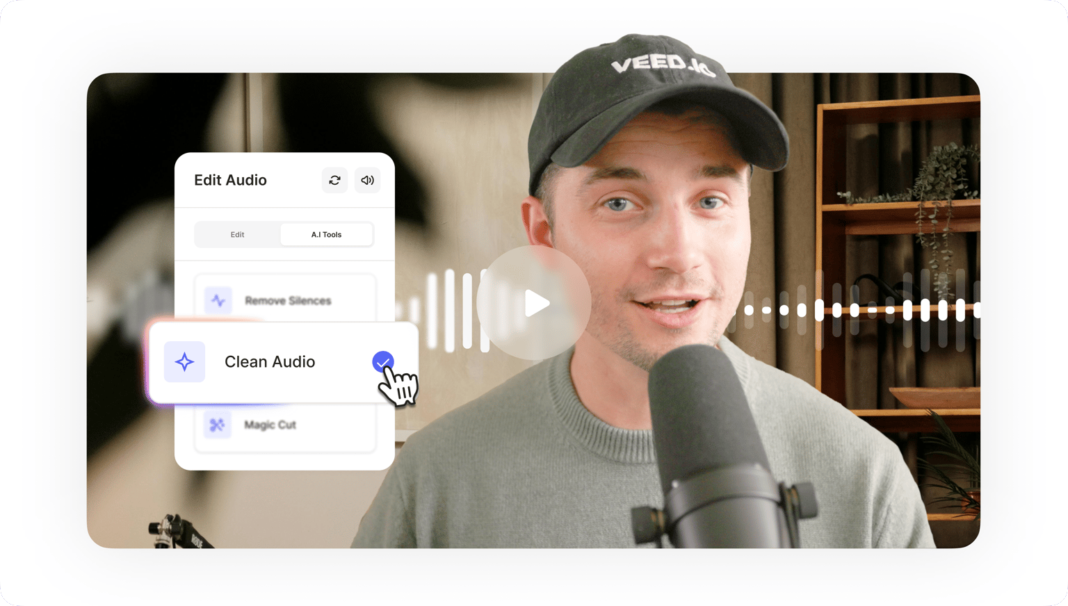 Ruído de fundo irritante em seu vídeo? Não tenha medo! O VEED é uma ferramenta super simples que limpa a interferência de fundo com apenas um clique do mouse. Não há necessidade de gravar seu vídeo novamente. Não há necessidade de comprar microfones de bloqueio de som caros. Basta usar o removedor de ruído de fundo do VEED para silenciar todo o ruído de fundo indesejado de seus arquivos de vídeo (e áudio!). Não importa o arquivo de vídeo - MP4, MOV, AVI, etc. - não importa o ruído de fundo - vento, chuva, tráfego, relógios, estática - o VEED pode ajudá-lo a limpar seu áudio em questão de segundos. Nossa ferramenta é incrivelmente fácil de usar e não requer downloads ou inscrição. Remova o ruído de fundo dos seus vídeos sem sair do navegador. Basta enviar seu vídeo, clicar no botão “Limpar áudio” e pronto - o ruído de fundo será removido automaticamente. Exporte seu vídeo como um arquivo MP4 e compartilhe-o nas redes sociais!