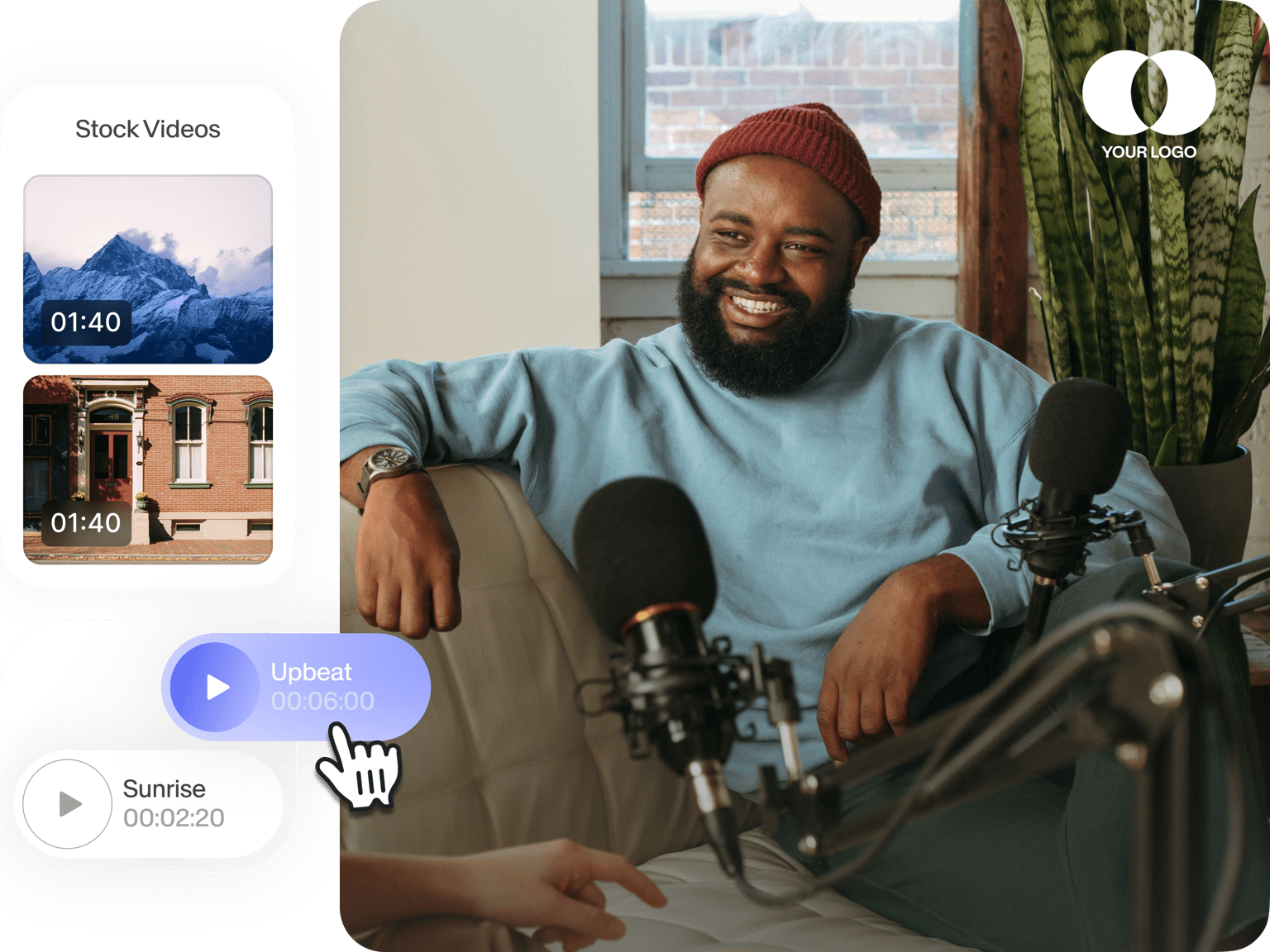 Start creating your video. You can start with images and then add music, sound effects, captions, and more. Or you can add royalty-free video clips from our stock library to go with your audio recording.