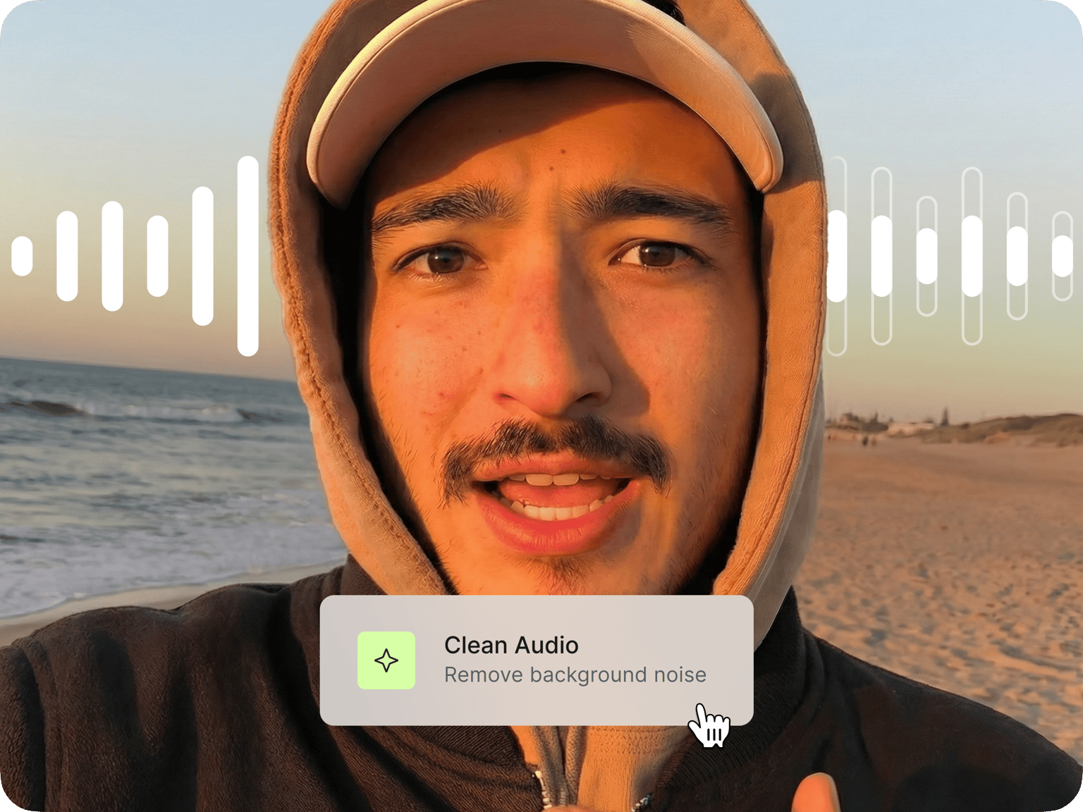 Toggle ‘Clean audio’ on under AI tools. The background noise remover detects and removes unwanted sounds — wind noise, traffic, AC hums, and more. Toggle ‘Clean audio’ off anytime to compare with your original audio.