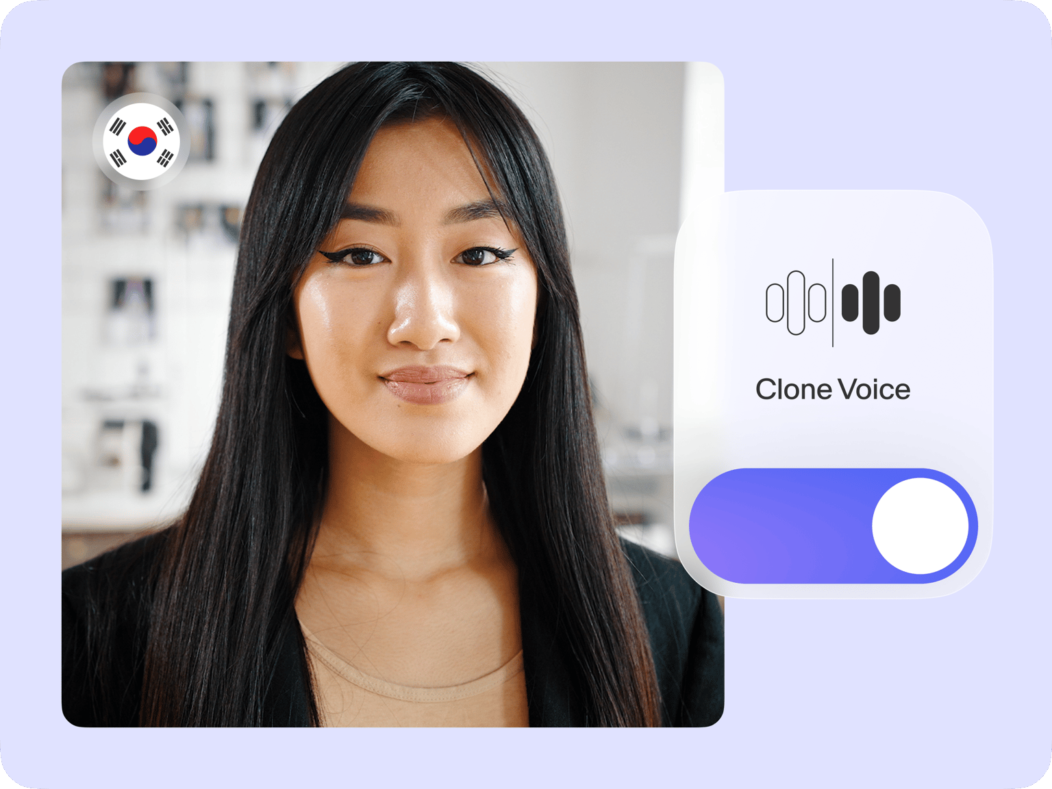 Create custom Korean voiceovers without recording your voice every time. Our voice cloning tool lets you generate speech by typing text. Simply record your voice sample in less than a minute. Perfect for e-learning videos and social media content. Besides Korean, our voice cloning tool gives you 25+ language options to reach more audiences.