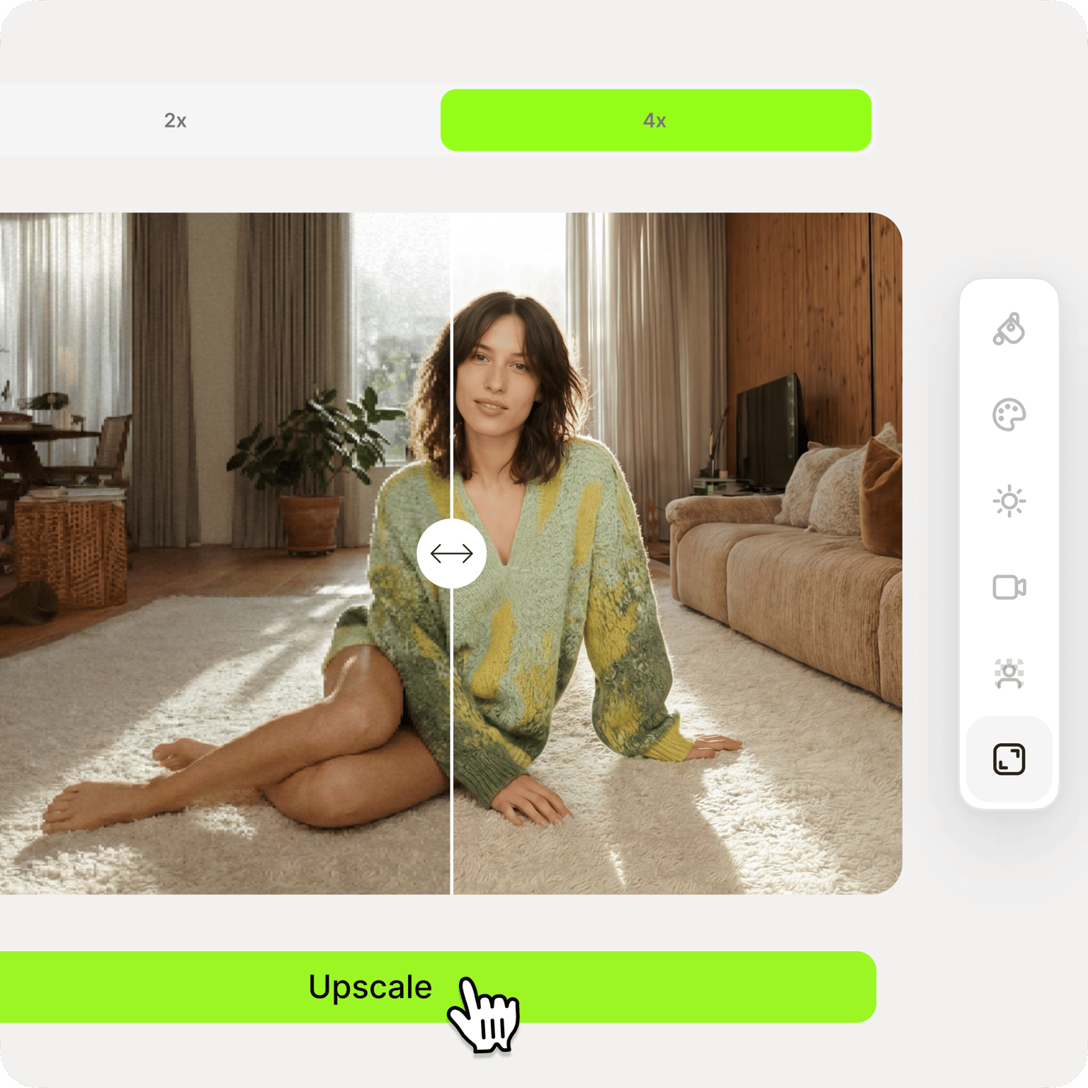 Traditional resizing stretches pixels and leaves you with a blurry mess. VEED's AI upscaler works differently. It analyzes your image and increases resolution and sharpness. Choose 2x for quick boosts or 4x when you need maximum clarity for print or large displays.