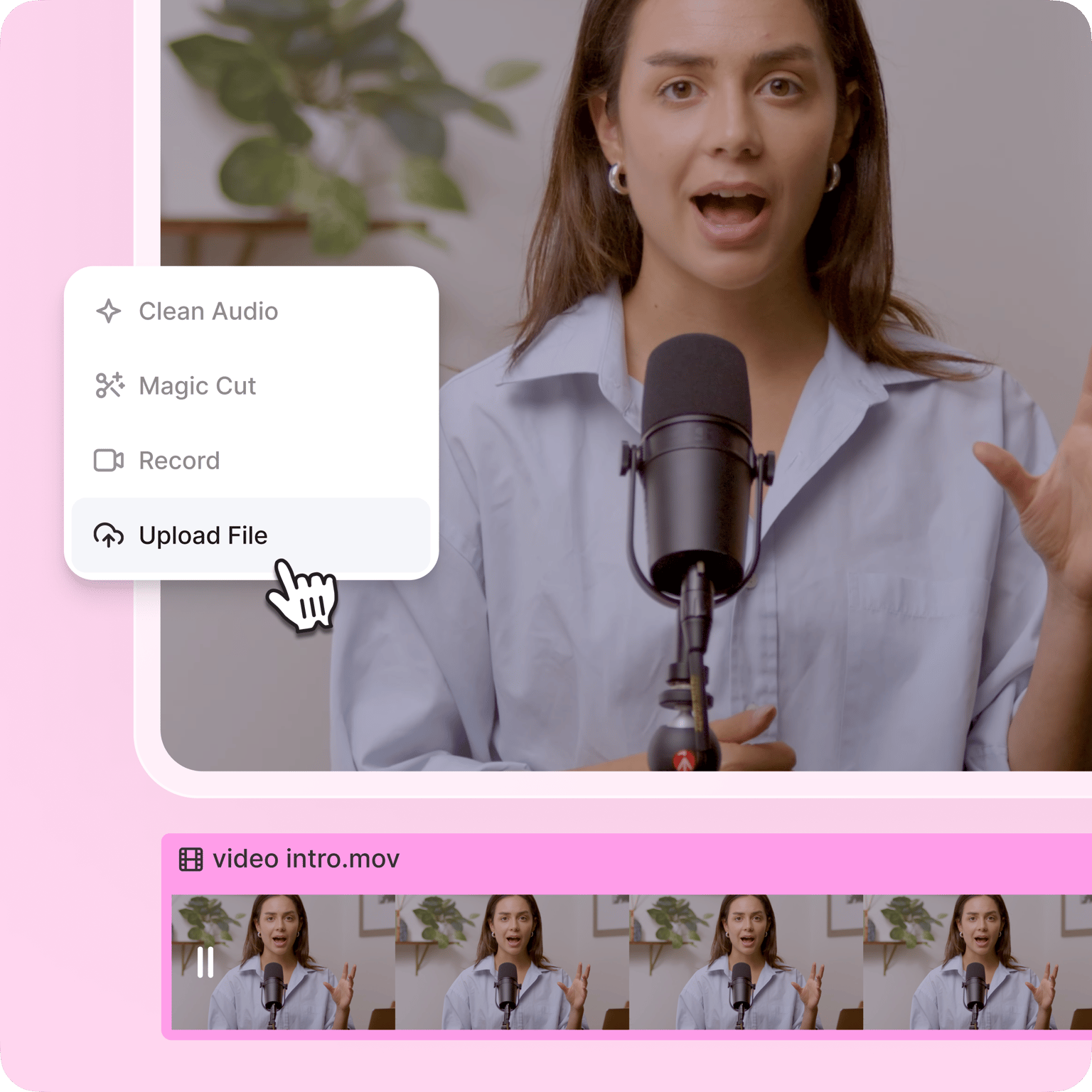 Remove background noise from video online; it only takes seconds. Our AI noise reduction tool removes wind noise, AC hums, keyboard clicks, background chatter, and echo from your video. Just click ‘Clean Audio’ and get studio-quality sound instantly. Try it for free.