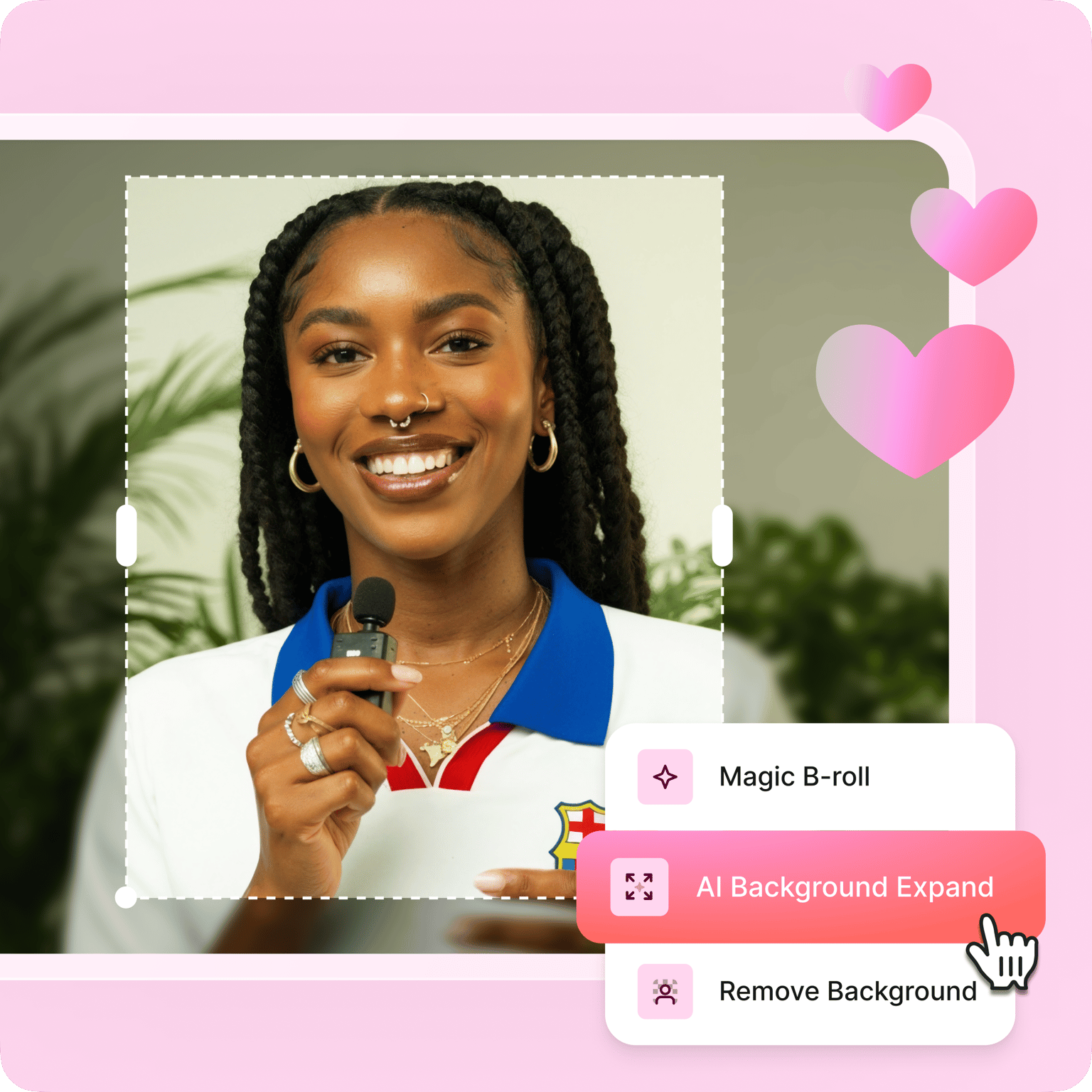 Remove backgrounds, then keep editing without switching platforms. Use AI Background Expand to turn vertical videos into horizontal format (or vice versa) without awkward crops or black bars. Click ‘Generate’ to create custom background images or videos with AI. Add auto subtitles and lower thirds, and clean background noise from audio. You have everything you need to make professional videos.