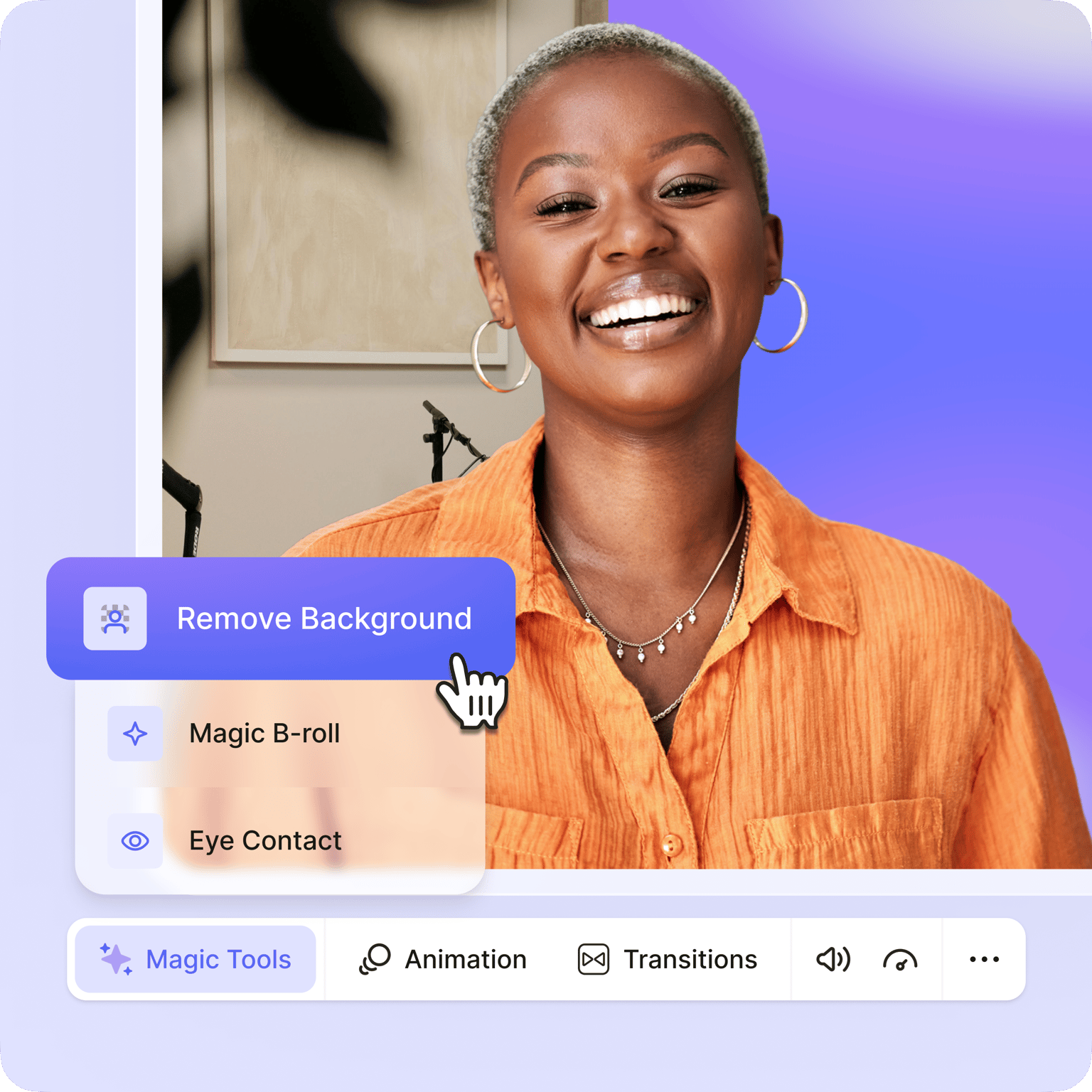 Remove and replace your video’s background. Customize backgrounds for social clips, video ads, and tutorials