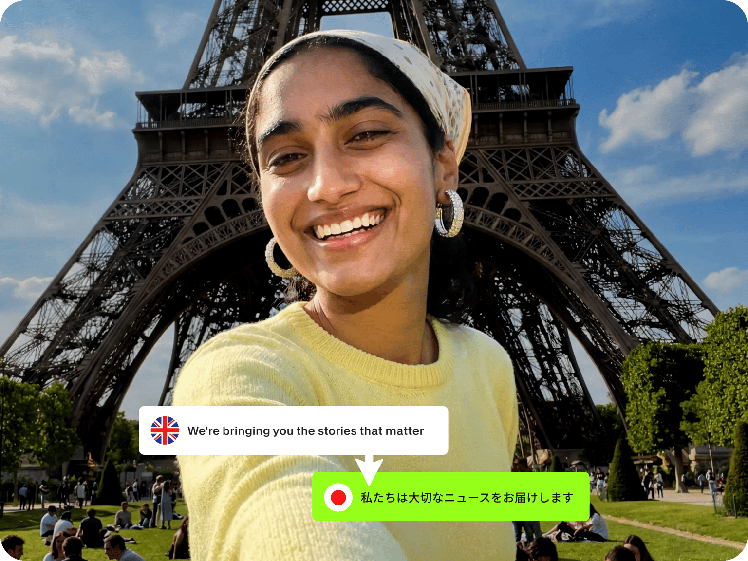Select your target language and preferred voice. Clone the original voice or choose one of our stock voices. Enable lipsync to match lip movement with the translated speech.