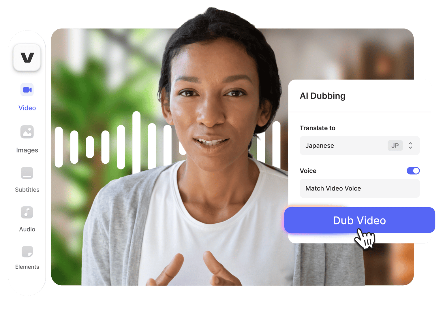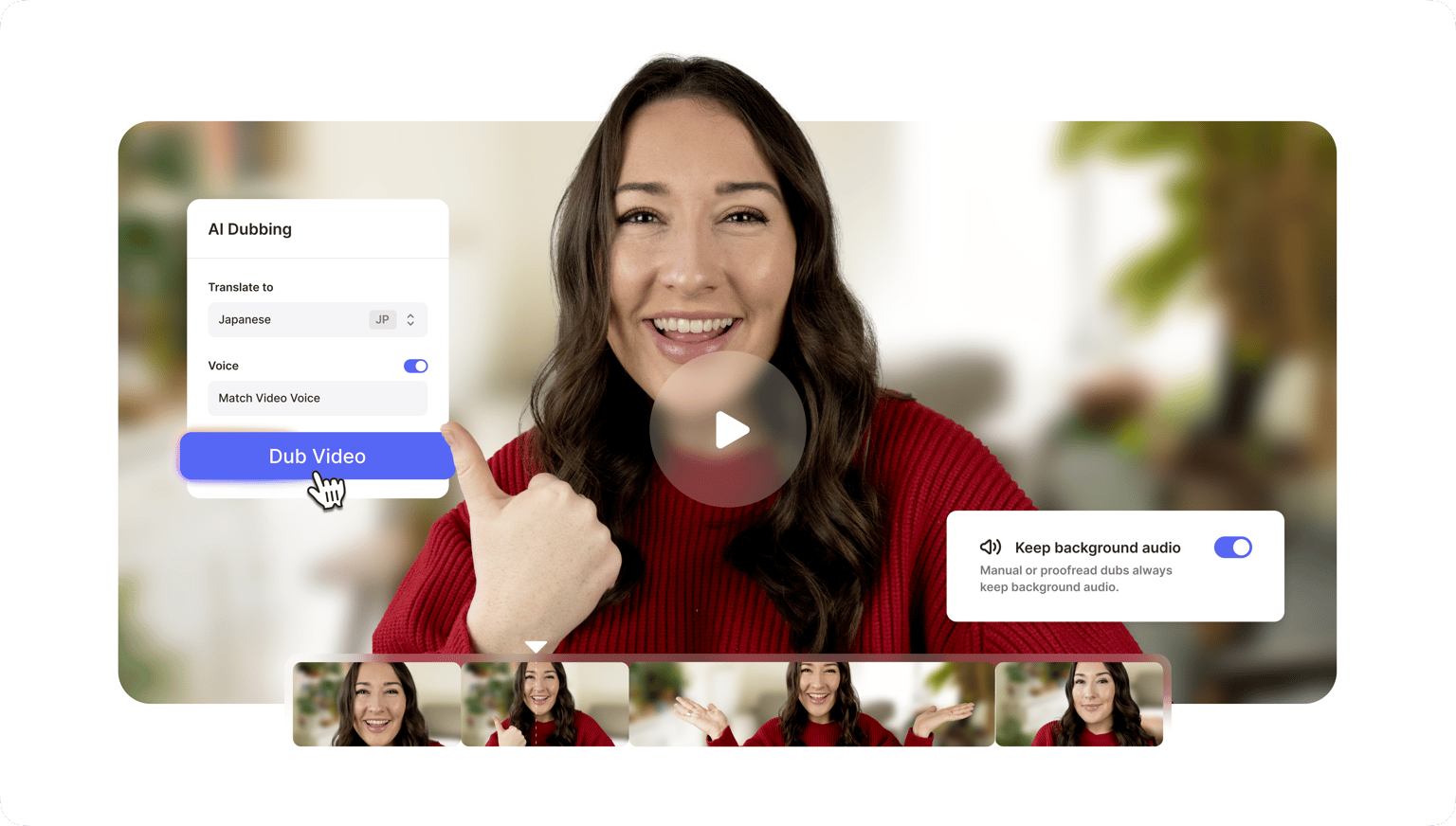 Videolarınızı çevrimiçi olarak herhangi bir dile otomatik olarak çevirin. Videolarınızın öne çıkmasını sağlamak için yapay zeka destekli doğal ses ve aksan!